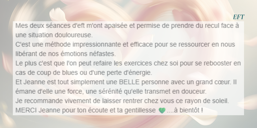 Des résultats concrets : bien que chaque personne ressente les soins différemment, beaucoup témoignent d’un apaisement durable, d'un réel changement et d’une meilleure énergie.